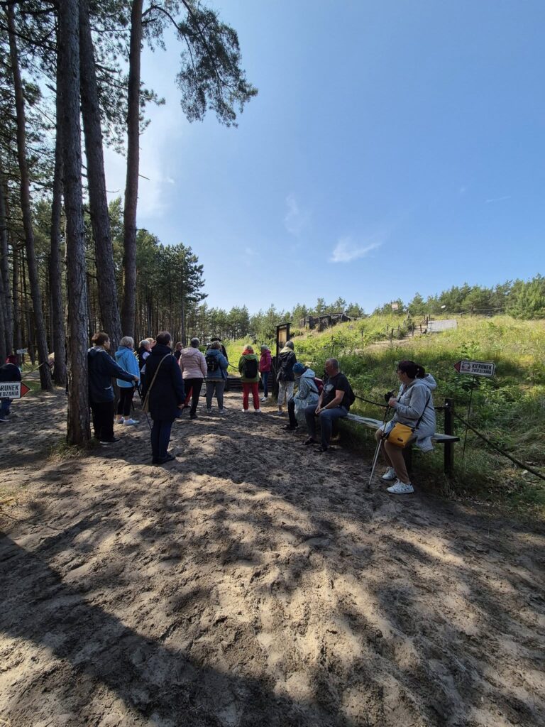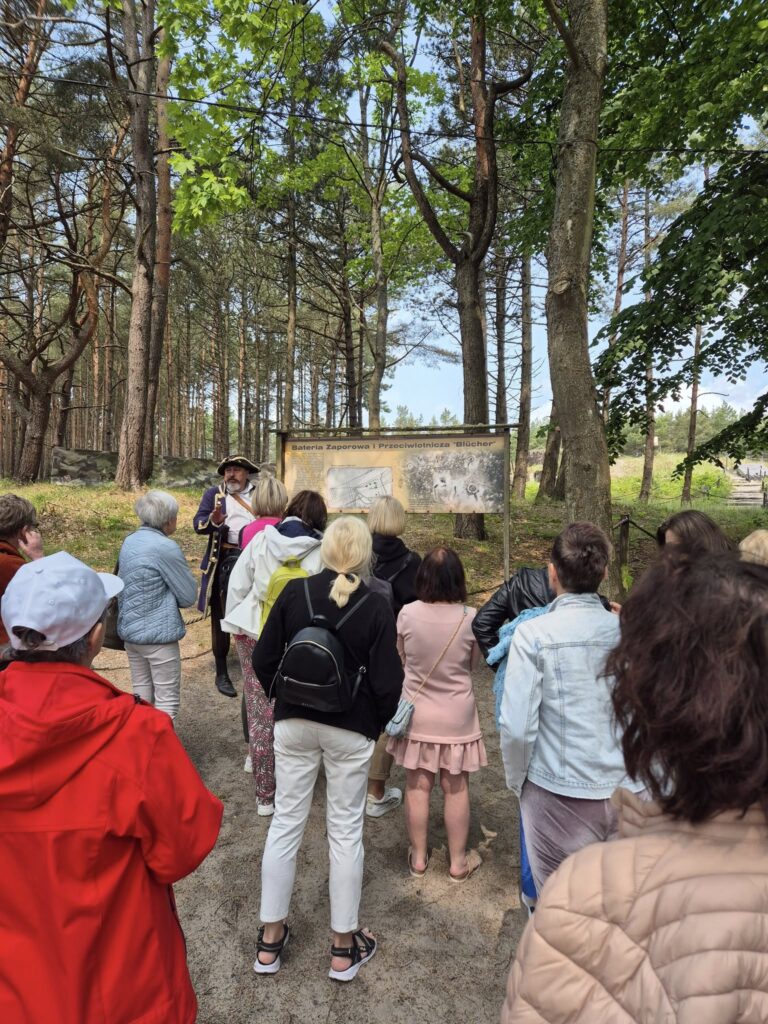 W trakcie wyjazdu zwiedzaliśmy Ustkę z bardzo klimatycznym przewodnikiem, Panem Marcinem Barnowskim (serdecznie pozdrawiamy!), który fantastycznie opowiadał nam o historycznej architekturze, licznych rzeźbach i ciekawych miejscach. Zwiedziliśmy z nim m.in. Bunkry Bluchera, które powstały jako baza obronna na usteckich wydmach.