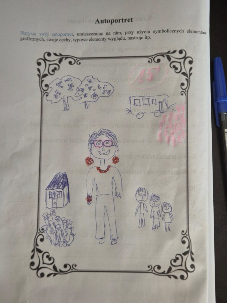 Ale nasze warsztaty wyjazdowe, to oprócz zwiedzania, spacerów po plaży i wspólnej integracji, przede wszystkim grupowe spotkania z psychologiem. Tym razem rozmawialiśmy o samoocenie i dlaczego bardzo ważne jest, aby była wysoka, a ramach różnych zadań od prowadzącej rysowaliśmy nawet swoje autoportrety. A wszystko po to, aby poznać swoje możliwości i potencjał, słowem: odkryć siebie na nowo!